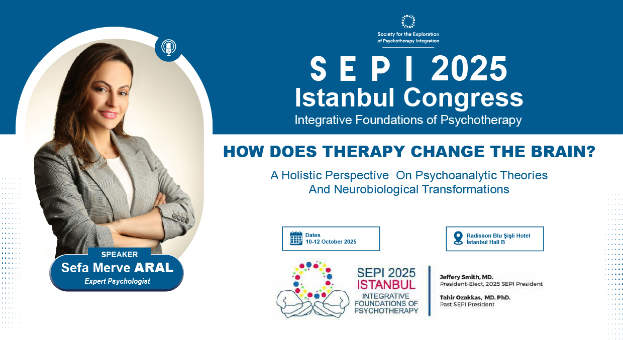 Clinical Psychologist Merve Aral will be a speaker and panel moderator at the SEPI Istanbul Congress between October 10–12, 2025, presenting on “Neuroplasticity and the Neurobiological Foundations of Psychotherapy.”